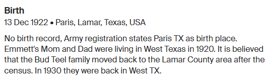 BIRTH 13 DEC 1922 • Paris, Lamar, Texas, USA