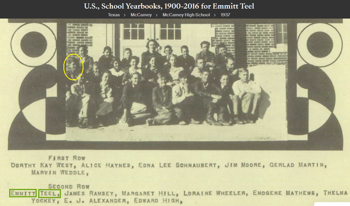 1930 Age 7 • Birth of sister Meredith Alice Teel Savoie (1930–2013) • 27 Feb 1930 • Barstow, Texas, USA