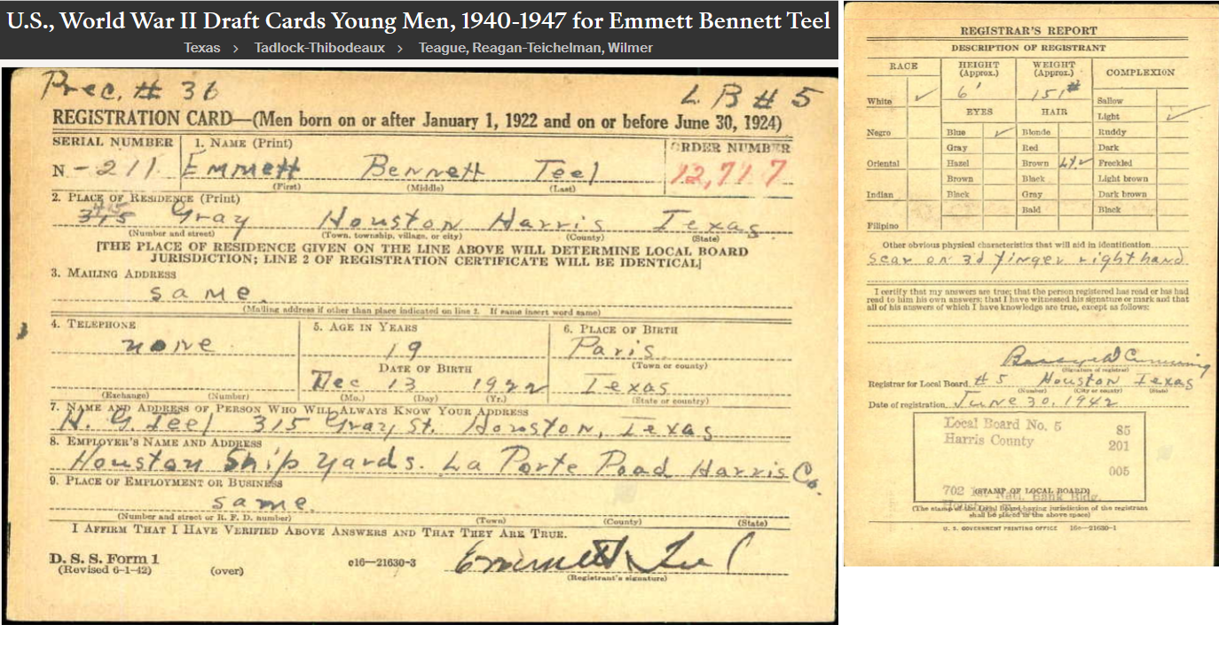 1942 Age 20 • Residence • Houston, Texas, USA • Self