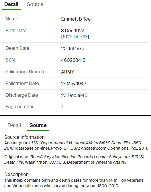 Prior to 1850, a US Census would list only the name of the head of the household. Family members and persons living in the household, including the head, were listed either Male or Female and grouped into age ranges. (Example) This makes it difficult to trace women and children born, living, or married prior to 1850. So even if a head of the household is found in a census, there is a challenge to match the age of a married couple and their children should be when compared to other known records (such as death records or census records dating 1850 and after). Also, in census taking 1850 and after, I have discovered many errors in recording made of Place of Birth. For example, in the 1850 census for the Peter Teel family, all family members are recorded as being born in Virginia. Known family members not born in Virginia are known to be Peter Teel and his parents Philip and Lucy, all thought to be born in New York. The name Virginia is not written out but is simply a ditto mark from the space above. Another example is the 1880 census record for the Chas Teel family where Chas as well as his father and mother are recorded as being born in Missouri. Chas Teel as well as his mother (we believe) were born in Virginia and Peter his father was born in New York.